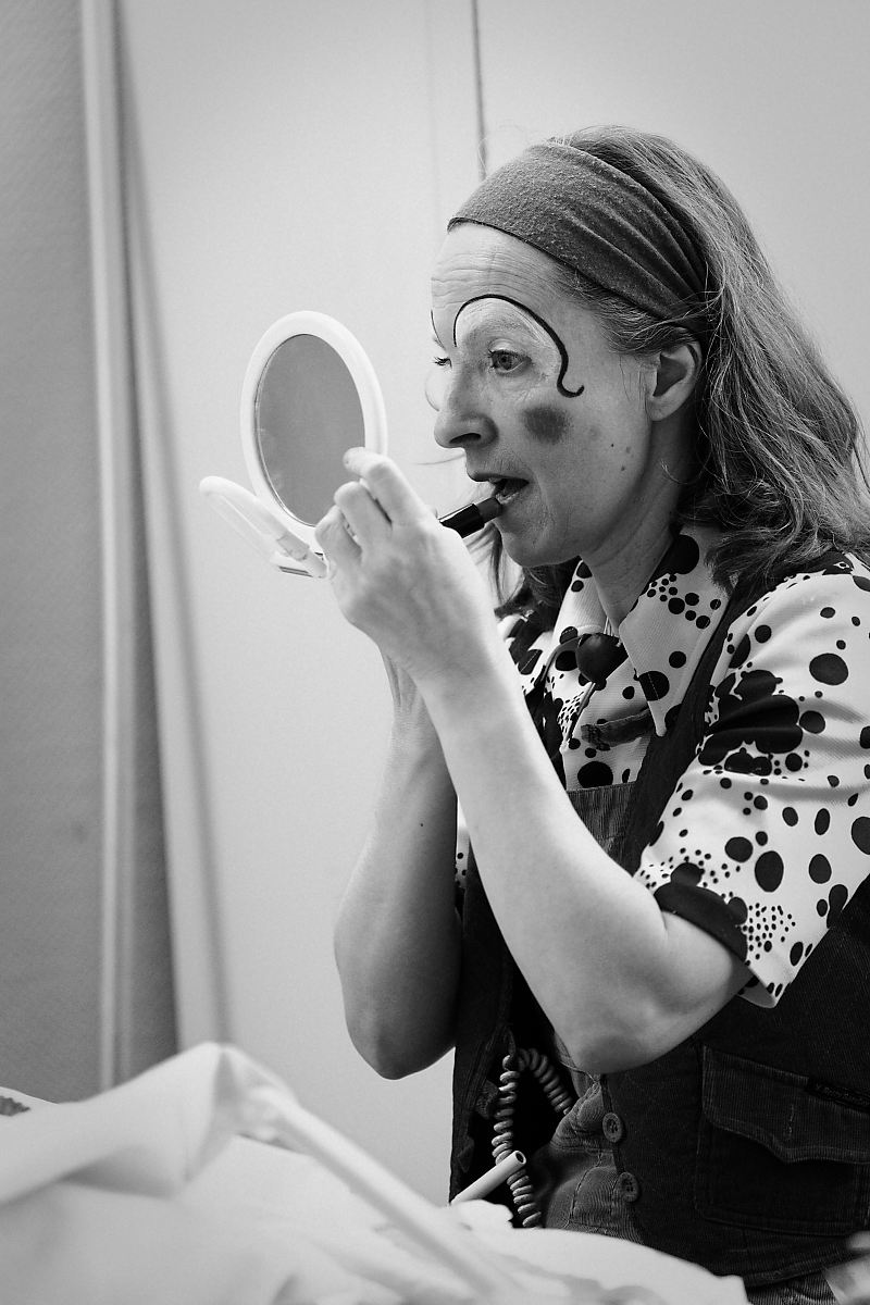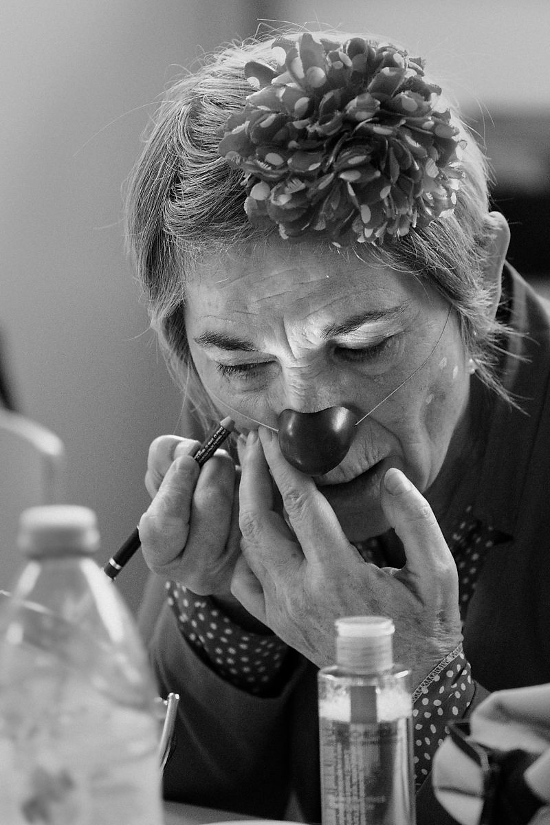 Un exercice pour les clowns : se maquiller sans miroir