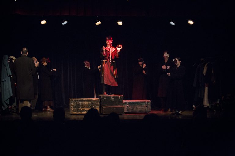 Spectacle original sur la guerre de 1914-1918, mêlant texte, danse, masques, chant, effets sonores et lumineux.
